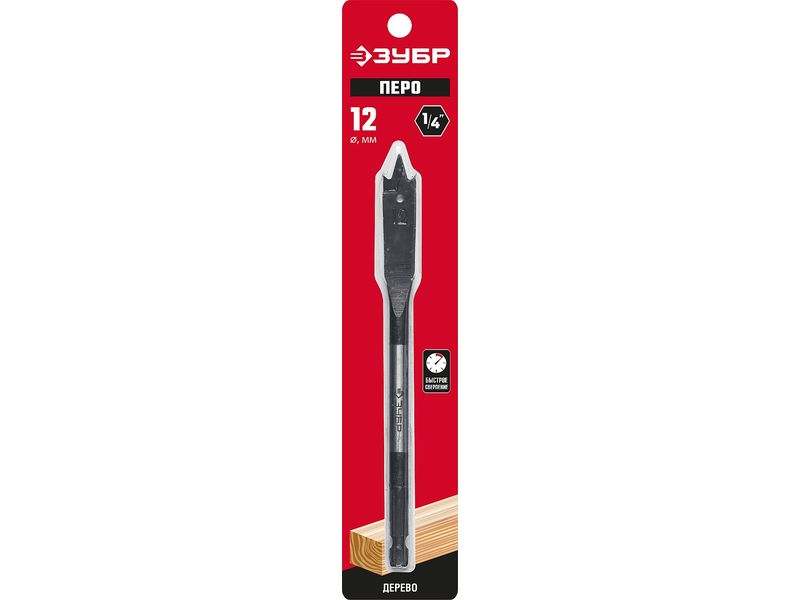 ЗУБР 12x152мм, Сверло перовое по дереву, с боковыми подрезателями