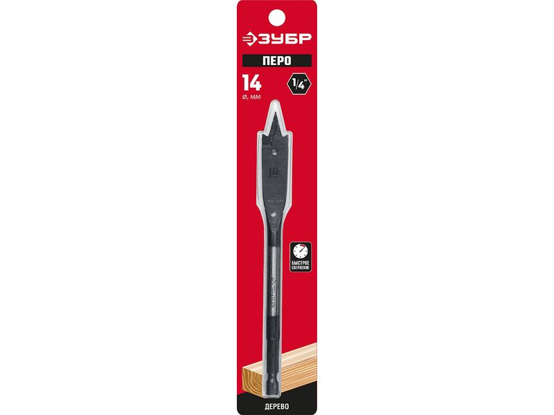 ЗУБР 14x152мм, Сверло перовое по дереву, с боковыми подрезателями