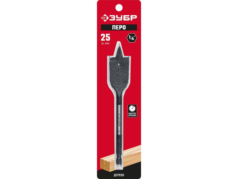 ЗУБР 25x152мм, Сверло перовое по дереву, с боковыми подрезателями