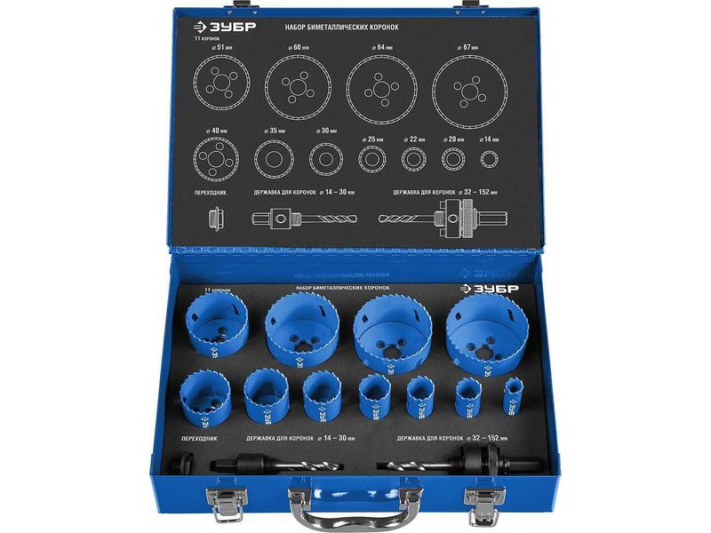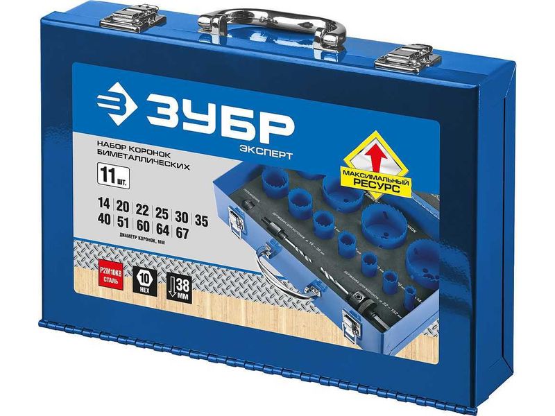 Купить Набор ЗУБР Коронки "ЭКСПЕРТ" биметаллические, глубина сверления до 38мм, d 14,20,22,25,30,35,40,51,60,64,67мм