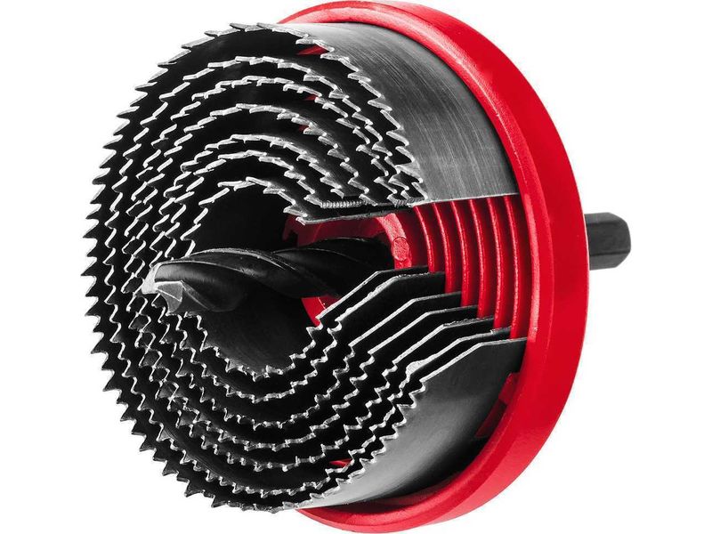 Наборная кольцевая пила Зубр это многолетний опыт создания инструментов для реализации самых сложных задач в строительстве и производстве. Применяется при сверлении дерева, ДСП и прочих древесных материалов