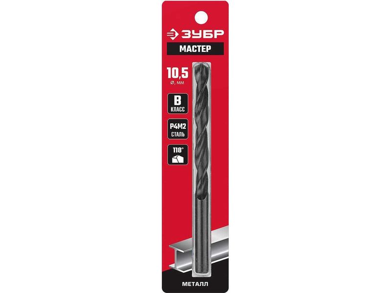 ЗУБР МАСТЕР 10.5х133мм, Сверло по металлу, сталь Р4М2, класс В