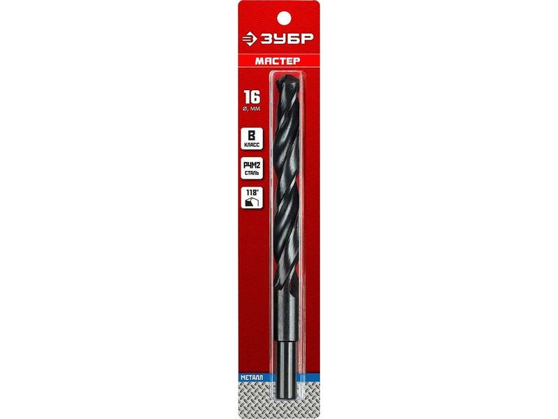 ЗУБР МАСТЕР 16.0х178мм, Сверло по металлу, проточенный хвотосвик, сталь Р4М2, класс В