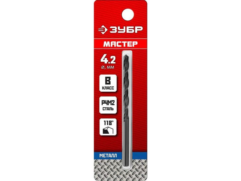 ЗУБР МАСТЕР 4.2х75мм, Сверло по металлу, сталь Р4М2, класс В