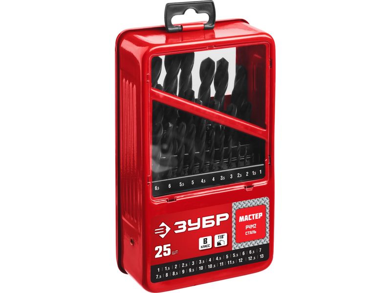 Набор сверл по металлу 25 шт (d-1-13 мм), быстрорежущая сталь, класс В, ЗУБР 29605-H25, МАСТЕР-25-424