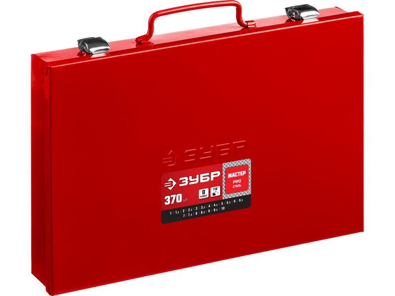 ЗУБР МАСТЕР 370шт(1-10мм), Набор сверл по металлу, сталь Р4М2, класс В, мет.бокс