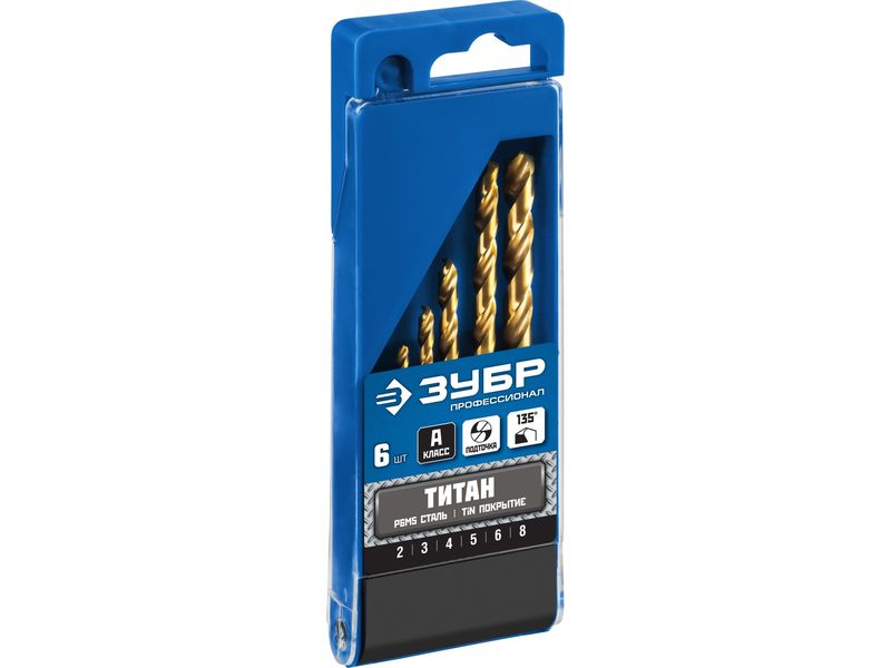 Набор сверл по металлу 6 шт (d-2-8 мм), ТИТАН, сталь Р6М5, класс А, ЗУБР Профессионал 29615-H6-424