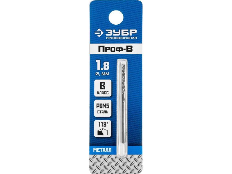 ЗУБР ПРОФ-В 1.8х46мм, Сверло по металлу, сталь Р6М5, класс В-568