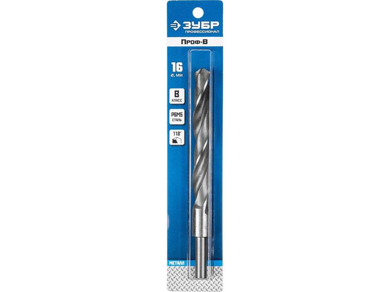 Сверло по металлу Проф-В, класс В, Р6М5, хвостовик 10мм, ЗУБР Профессионал 29621-16, d-16,0 мм-568