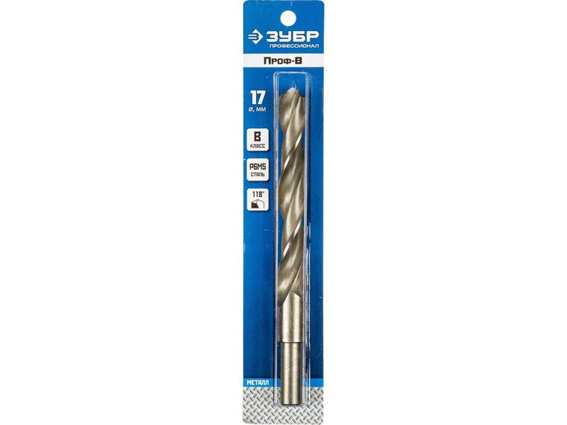 ЗУБР ПРОФ-В 17.0х184мм, Сверло по металлу, проточенный хвотосвик, сталь Р6М5, класс В-568