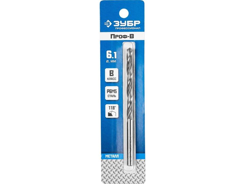 Купить Сверло по металлу Проф-В, класс В, Р6М5, ЗУБР Профессионал 29621-6.1, d-6,1 мм