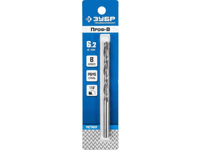 ЗУБР ПРОФ-В 6.2х101мм, Сверло по металлу, сталь Р6М5, класс В-568