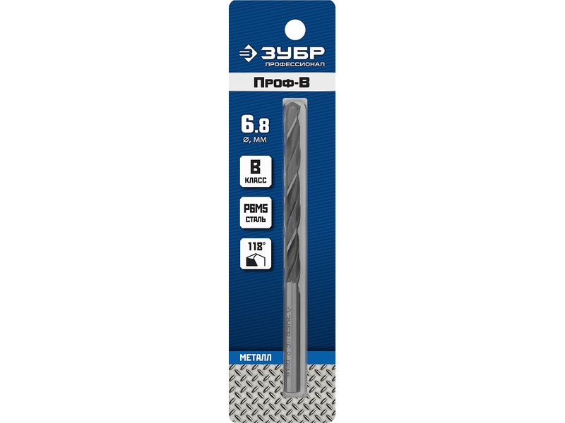 ЗУБР ПРОФ-В 6.8х109мм, Сверло по металлу, сталь Р6М5, класс В-568