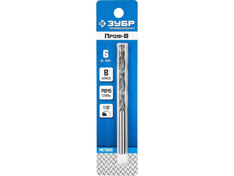 Купить Сверло по металлу Проф-В, класс В, Р6М5, ЗУБР Профессионал 29621-6, d-6,0 мм