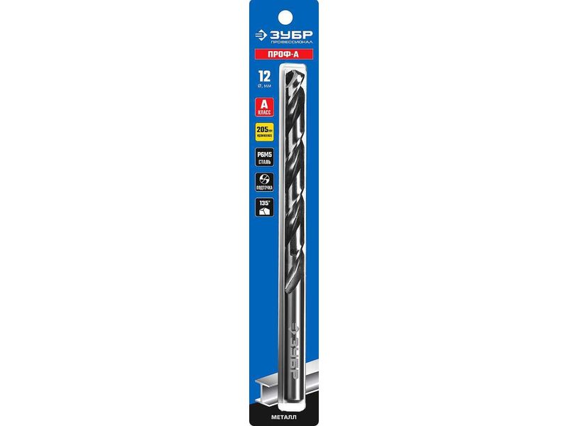 ЗУБР ПРОФ-А 12,0 x 205мм, Удлиненное сверло по металлу, сталь Р6М5, класс А-568