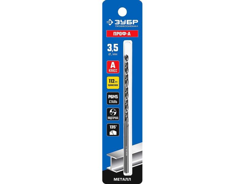 ЗУБР ПРОФ-А 3,5х112мм, Удлиненное сверло по металлу, сталь Р6М5, класс А-568