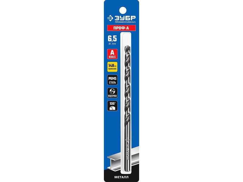 ЗУБР ПРОФ-А 6,5х148мм, Удлиненное сверло по металлу, сталь Р6М5, класс А-568