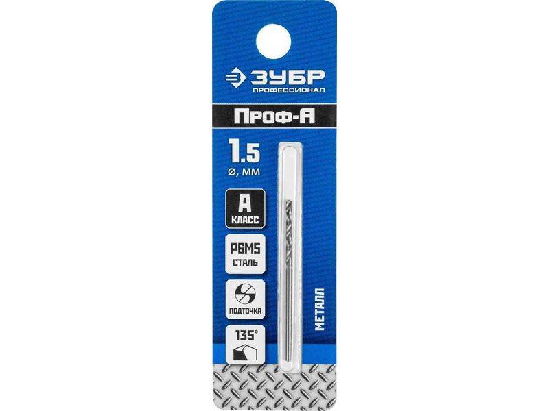 Сверло по металлу Проф-А, класс А, сталь Р6М5, ЗУБР Профессионал 29625-1.5, d-1,5 мм