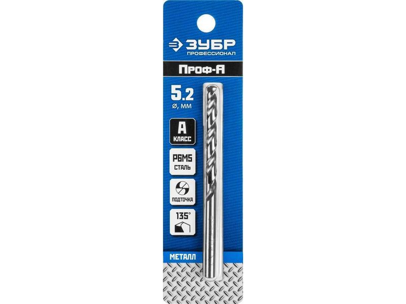 ЗУБР ПРОФ-А 5.2х86мм, Сверло по металлу, сталь Р6М5, класс А-568