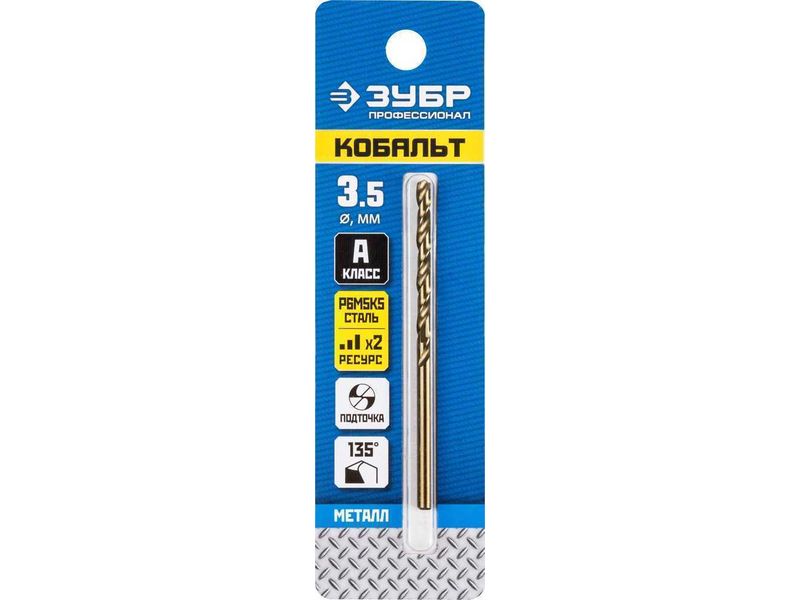Купить ЗУБР КОБАЛЬТ 3.5х70мм, Сверло по металлу, сталь Р6М5, класс А