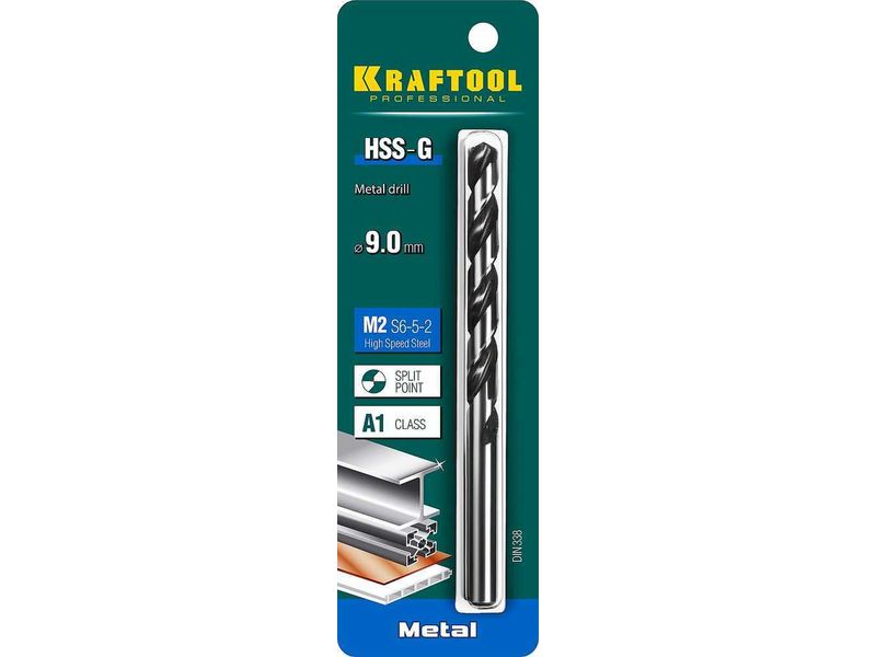 KRAFTOOL HSS-G 9.0 х125мм, Сверло по металлу HSS-G, сталь М2(S6-5-2)-517