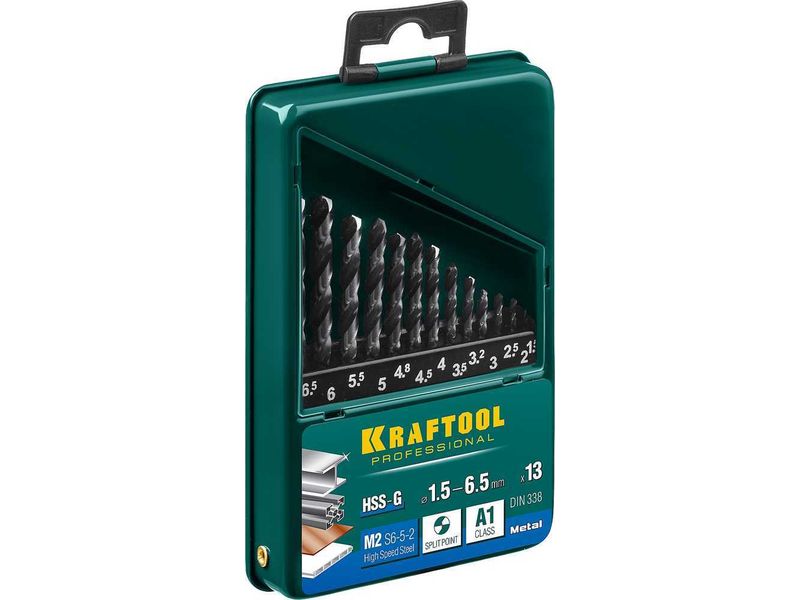 Купить Набор сверл по металлу 13 шт (d-1,5-6,5 мм), HSS-G, сталь М2(S6-5-2), класс A, KRAFTOOL 29651-H13, DIN 338 Цена: 1 370,00 |