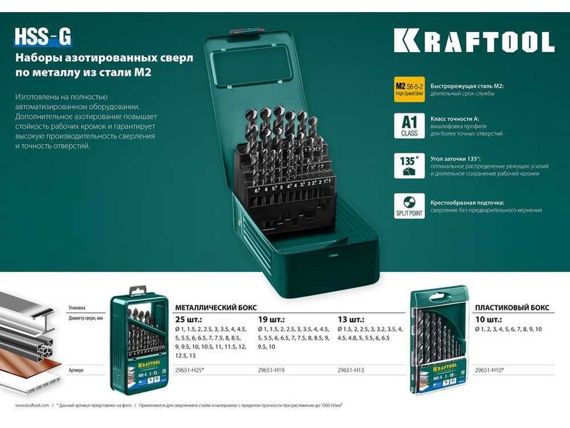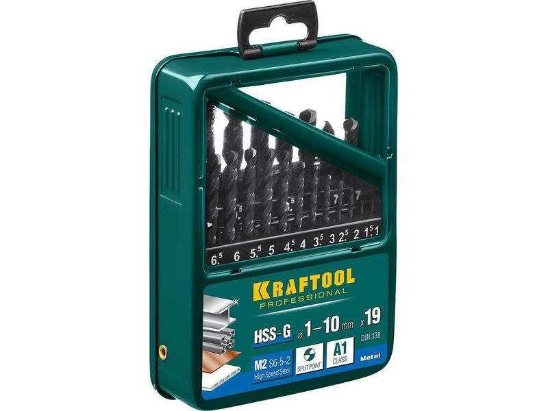 KRAFTOOL HSS-G 19шт(1-10мм), Набор сверл по металлу HSS-G, сталь М2(S6-5-2)-517