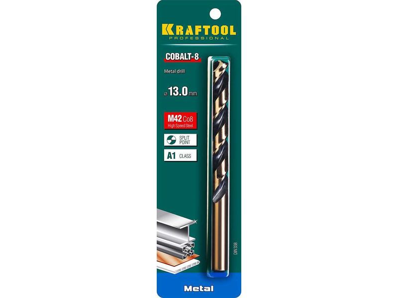 KRAFTOOL COBALT 13.0 х151мм, Сверло по металлу HSS-Co(8%) , сталь М42(S2-10-1-8)-569