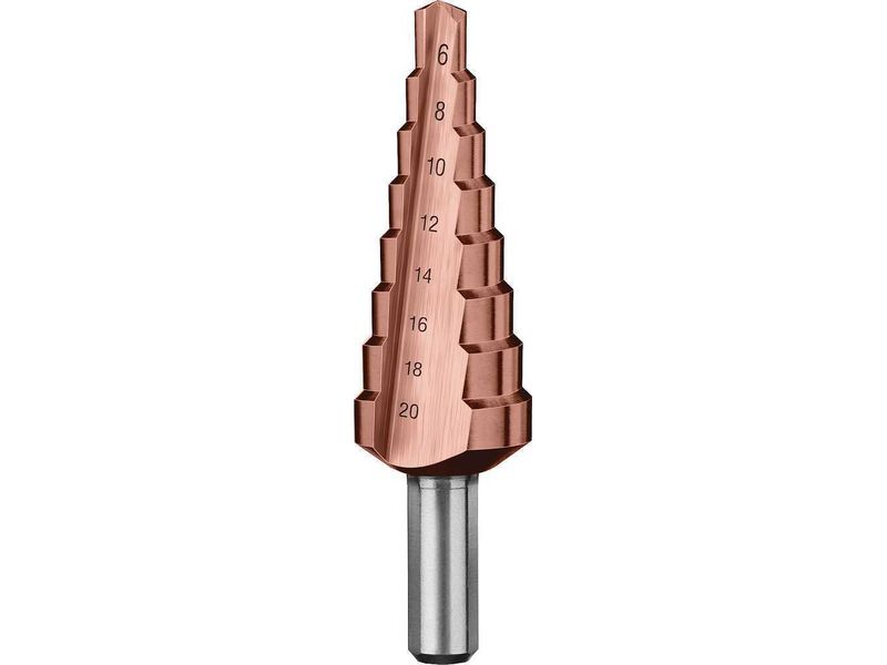 Купить Сверло ЗУБР "КОБАЛЬТ" ступен. по сталям и цвет. мет. ст. Р6М5 с кобальт. покрыт., d 6-20мм, 8ст. d 6-20, L-75мм, трехгран.хв.8мм