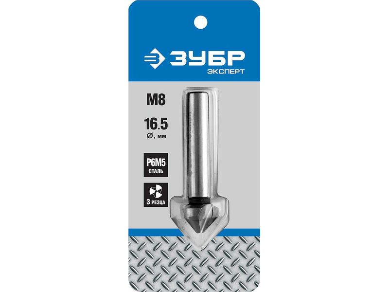 Зенкер ЗУБР "ЭКСПЕРТ" конусный с 3-я реж. кромками, сталь P6M5, d 16,5х60мм, цилиндрич.хв. d 10мм, для раззенковки М8 |