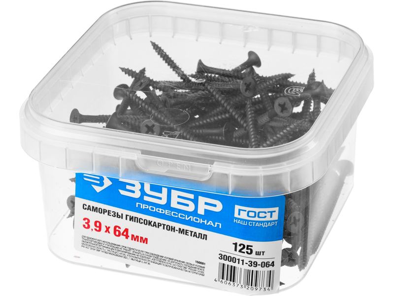 Саморезы фосфатированные с мелкой резьбой, гипсокартон-металл, ЗУБР 300011-39-064, PH2, 3,9 x 64 мм, 125 шт-310