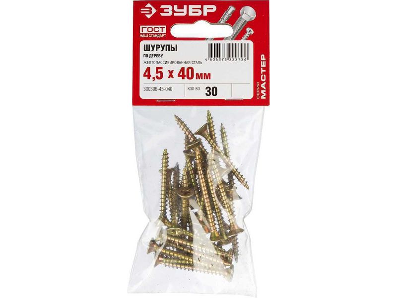 Купить Саморезы СУ-Ж универсальные, 40 х 4.5 мм, 30 шт, желтый цинк, ЗУБР