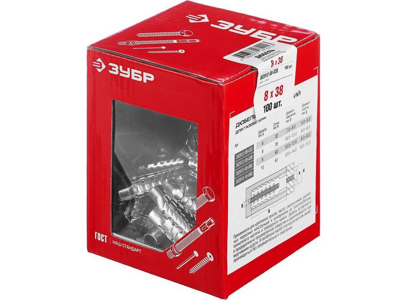 Дюбель металлический для газобетона, 8 x 38 мм, 100 шт, оцинкованный, ЗУБР