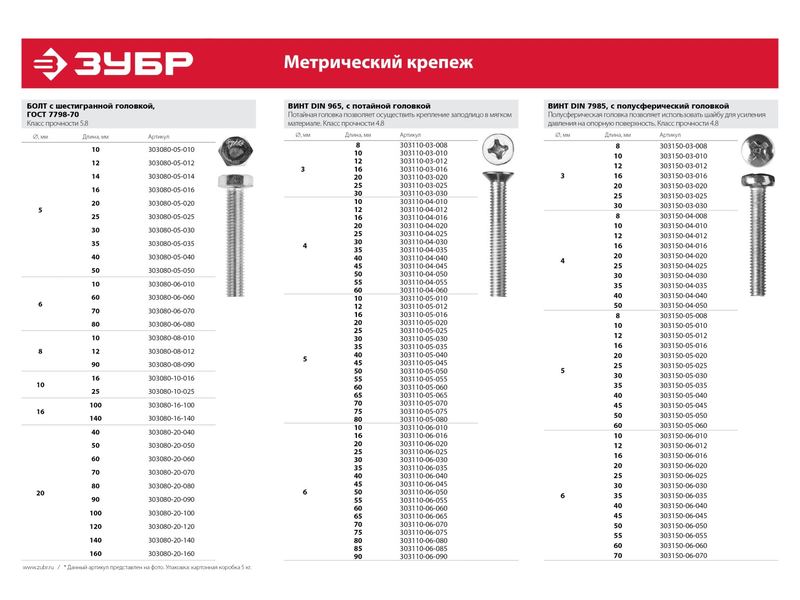 Купить Винт ЗУБР "МАСТЕР" DIN 7985, класс прочности 4.8, оцинкованный, M6x10мм, 5кг
