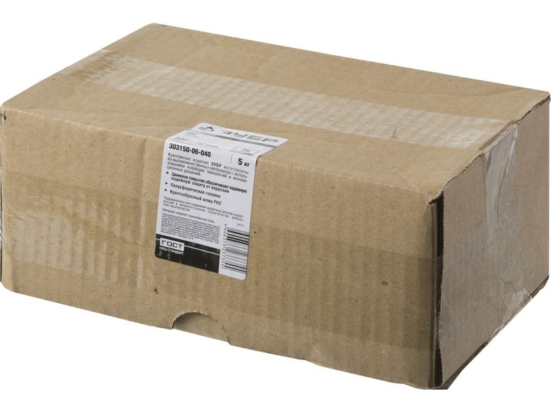 Винт ЗУБР "МАСТЕР" DIN 7985, класс прочности 4.8, оцинкованный, M6x40мм, 5кг