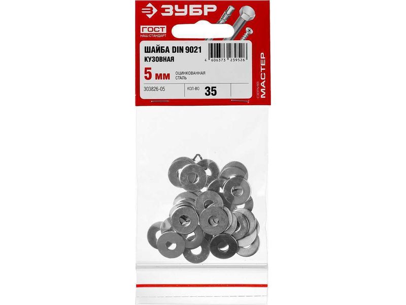 Шайба DIN 9021 кузовная, 5 мм, 35 шт, оцинкованная, ЗУБР-610