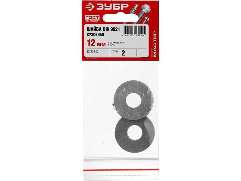 Шайба DIN 9021 кузовная, 12 мм, 2 шт, оцинкованная, ЗУБР
