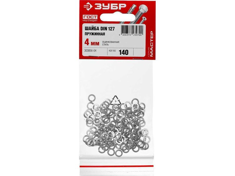 Купить Шайба DIN 127 пружинная, 4 мм, 140 шт, оцинкованная, ЗУБР