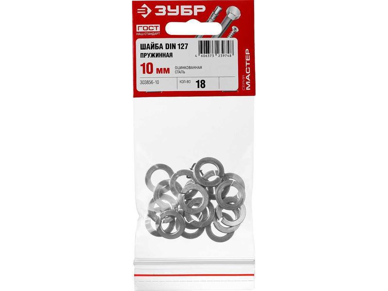 Шайба DIN 127 пружинная, 10 мм, 18 шт, оцинкованная, ЗУБР
