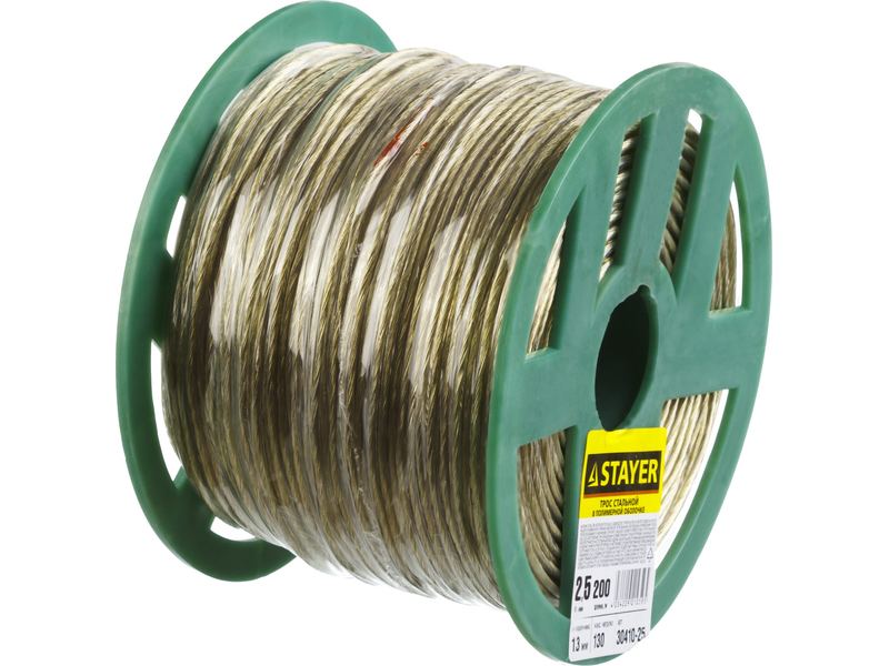 Купить Трос стальной STAYER "MASTER" в полимерной оболочке, d 2,5 мм, L 200 м