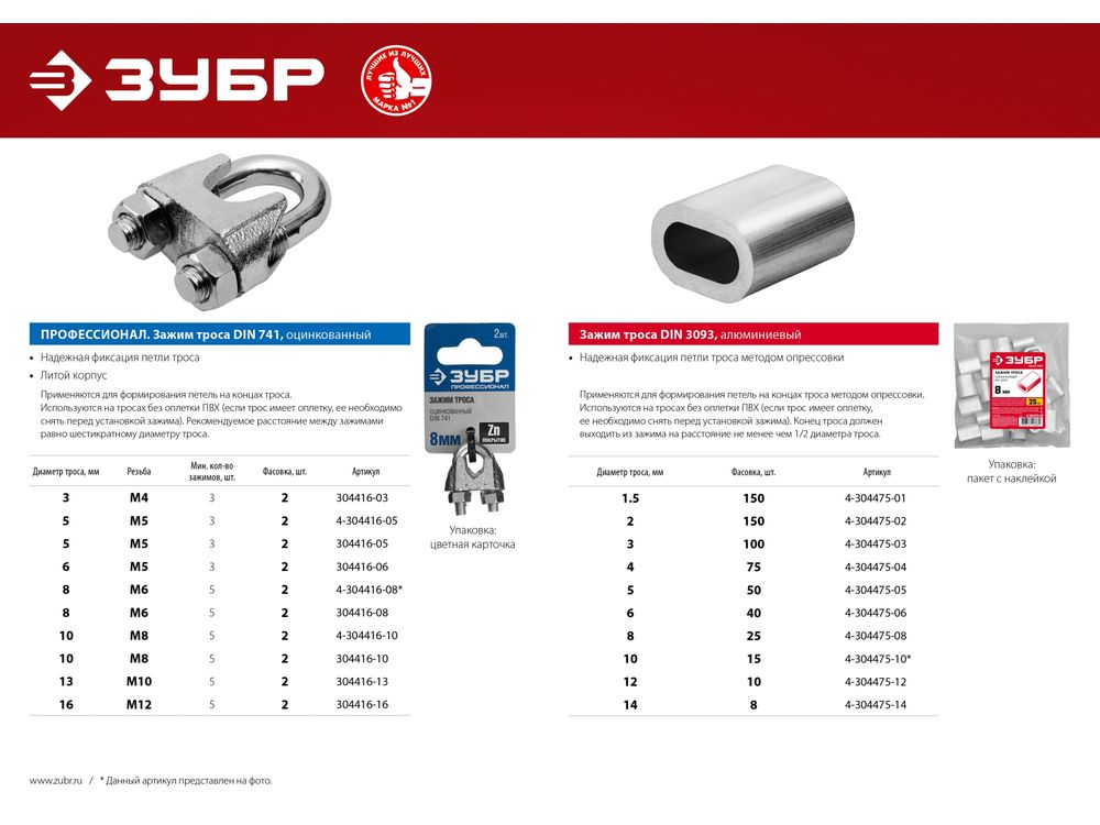 Зажим троса DIN 741, 16мм, 2 шт, оцинкованный, ЗУБР Профессионал