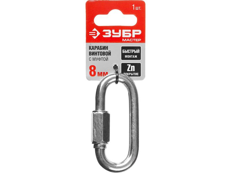 Карабин винтовой с муфтой, оцинкованный, 8мм, 1 шт, ЗУБР Мастер 304536-08