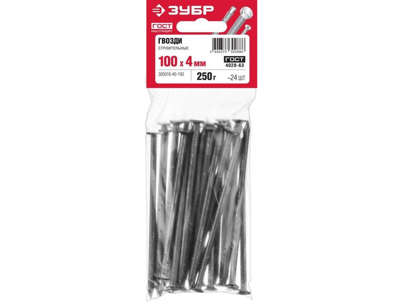 Гвозди строительные ГОСТ 4028-63, 100 х 4.0 мм, 250 гр., ЗУБР