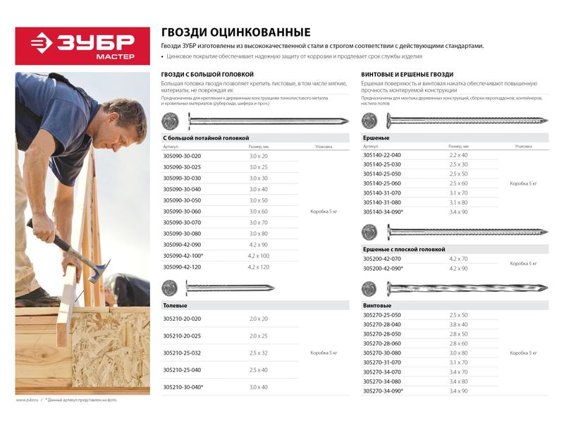 Большая плоская головка гвоздя предотвращает разрыв мягких материалов в месте крепления