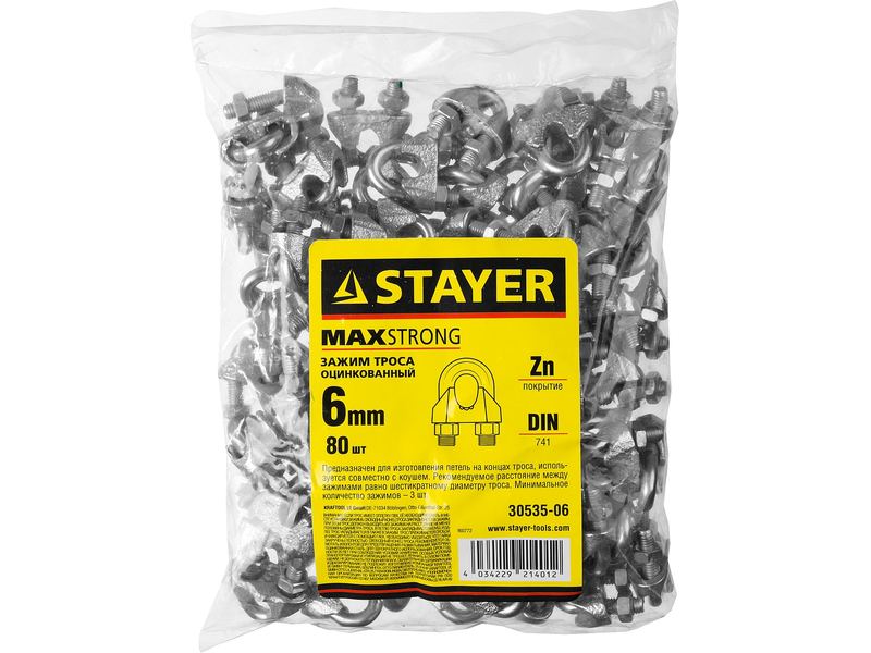 Зажим троса STAYER MASTER DIN 741, оцинкованный, 6мм, 80 шт
