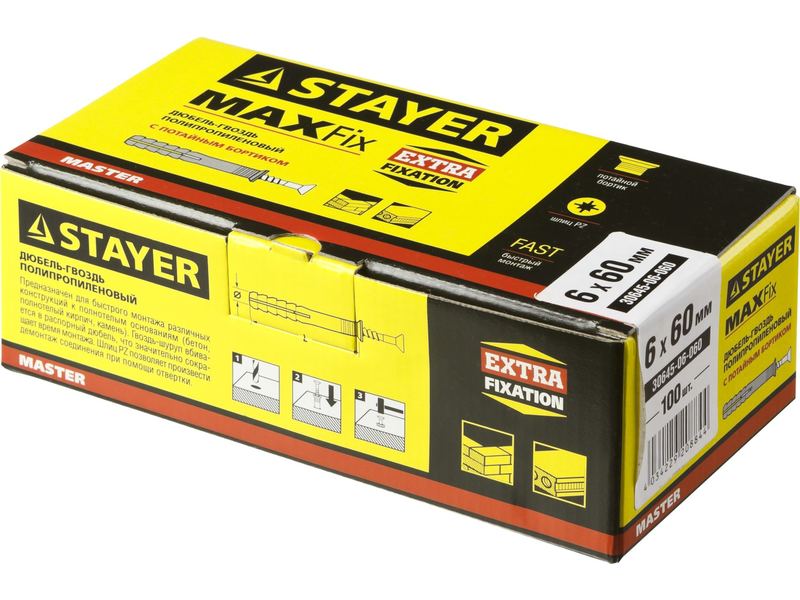 Купить Дюбель-гвоздь STAYER "MASTER" полипропиленовый, потайный бортик, 6 x 60 мм, 100 шт