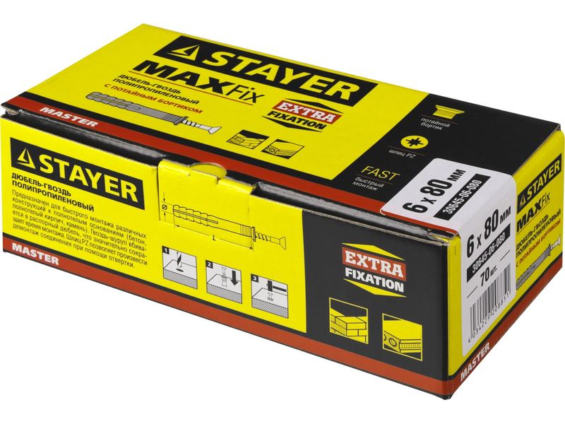 Купить Дюбель-гвоздь STAYER "MASTER" полипропиленовый, потайный бортик, 6 x 80 мм, 70 шт