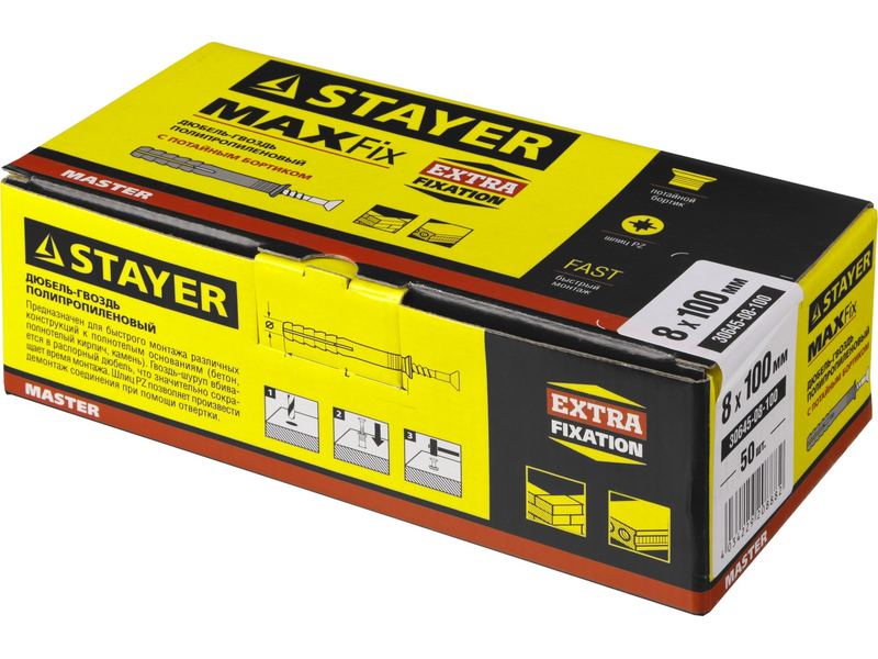 Купить Дюбель-гвоздь STAYER "MASTER" полипропиленовый, потайный бортик, 8 x 100 мм, 50 шт