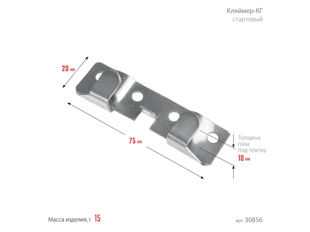 Купить ЗУБР Кляймер-КГ 10 х 20 х 75 мм, стартовый крепеж для керамогранита, цинк, 60 шт (30856)