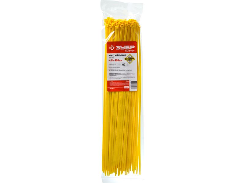 Купить Хомуты нейлоновые ЗУБР МАСТЕР желтые, 4,8 мм x 400 мм, 100 шт